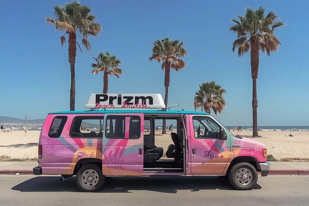 Travel in style with our gradient-wrapped, comfortable shuttle designed for your beach day.